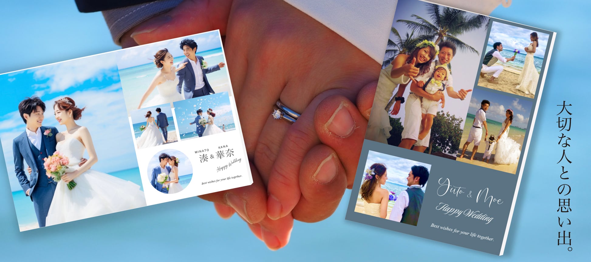 お好きな3枚の写真を選んで、思い出を形にできます。お写真をこちらのメールアドレスに添付してお送りください。その際、ご注文者様のお名前をご記入ください。