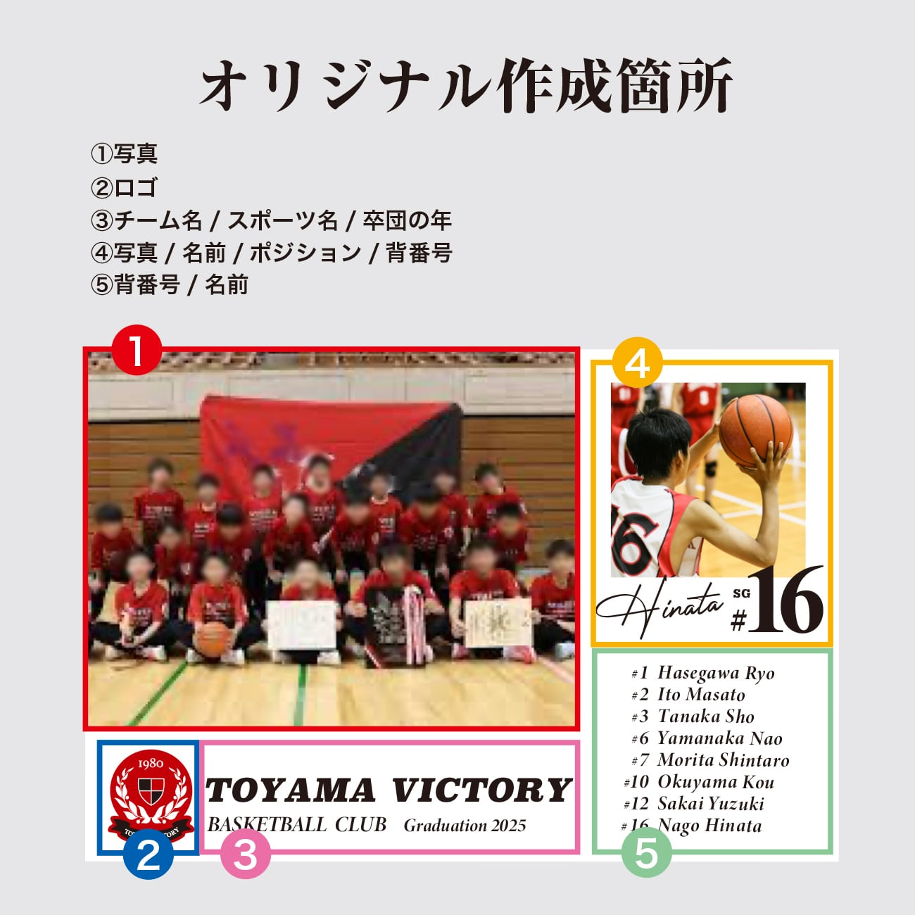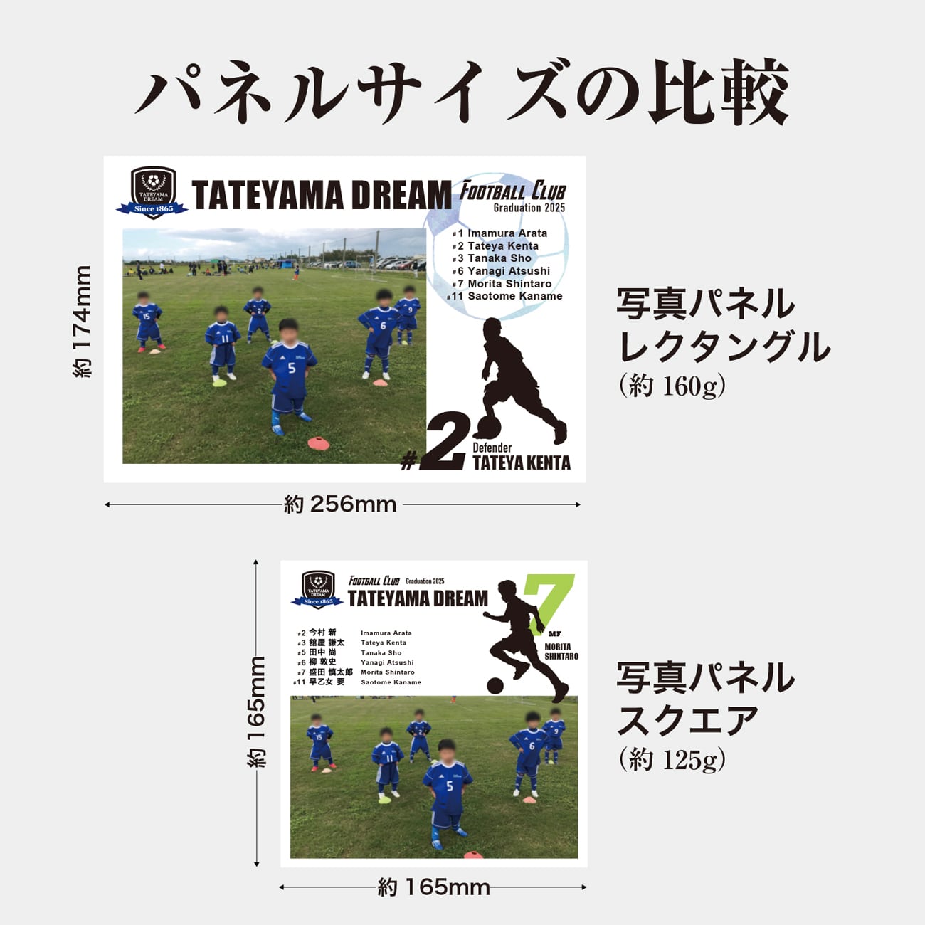 チーム名やロゴ、部員の名前を入れたオリジナルのパネルになります。
