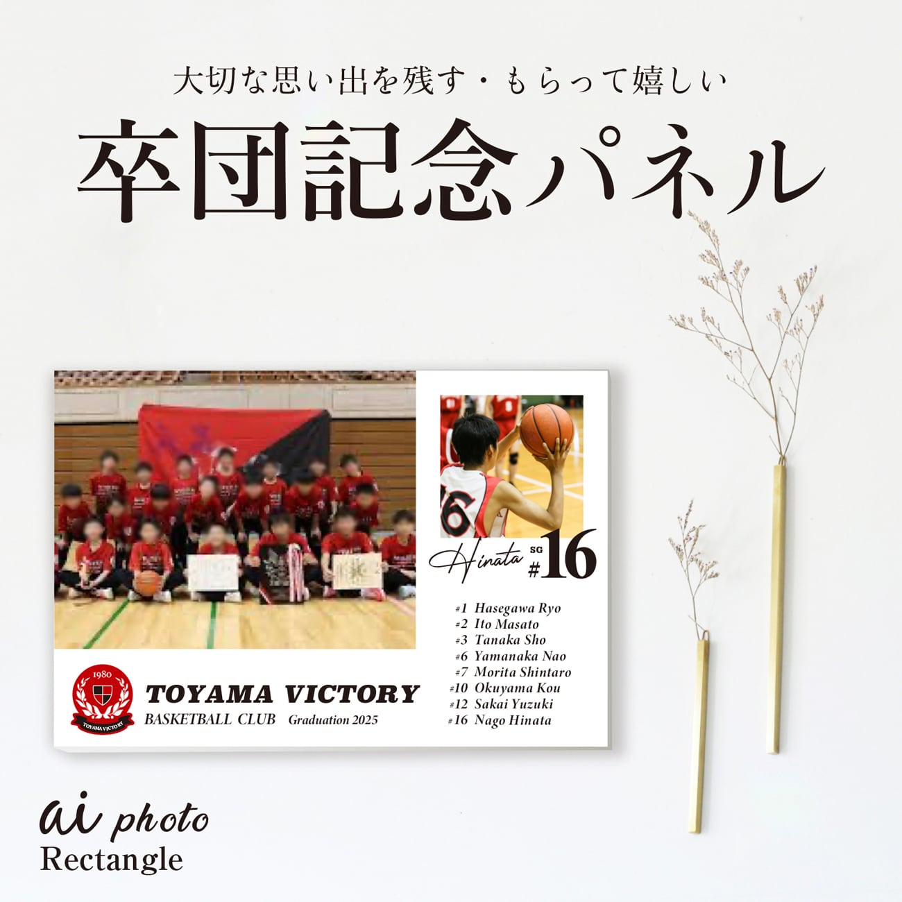 卒団記念パネル【レクタングルA】アイフォト|フォトパネル|思い出|写真|名入れ|卒団|卒部|メモリアルパネル|木製|記念|プレゼント|記念パネル|クラブ|サッカー|バスケ|野球