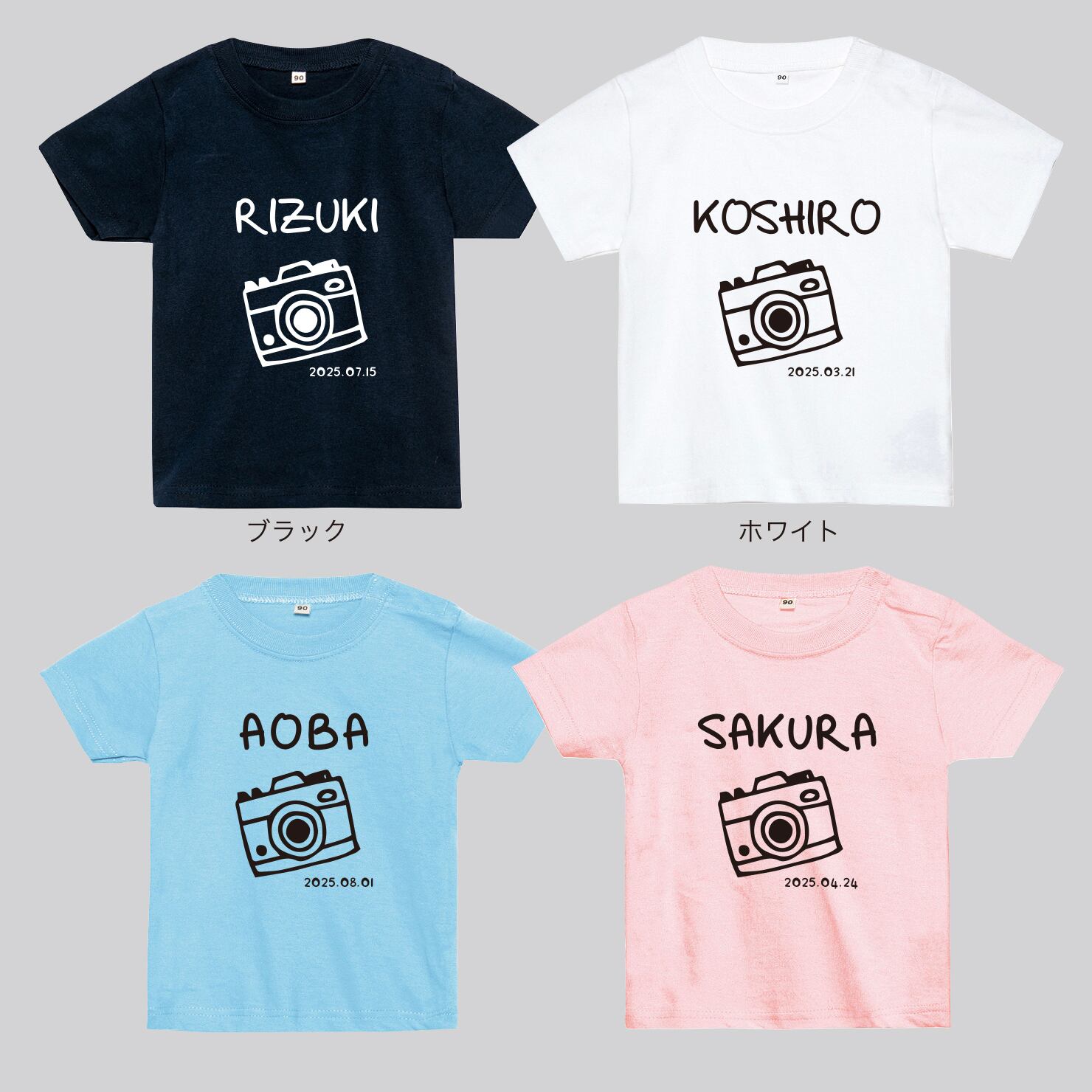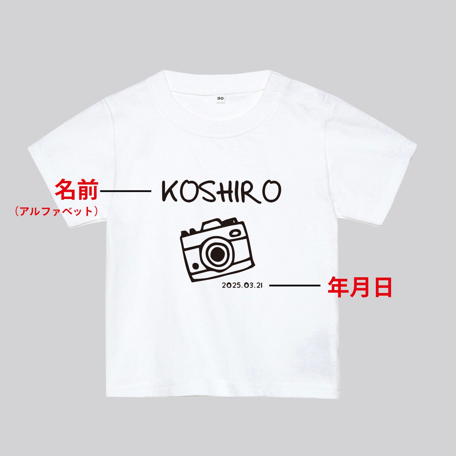 ai-T original【CAMERA】オリジナルTシャツ イラスト かわいい 半袖 誕生日 名入れ 出産祝い 80cm 90cm