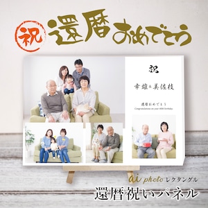 還暦祝い|フォトパネル【レクタングル】名入れ/壁掛け/卓上/敬老の日/プレゼント/誕生日/おじいちゃん/おばあちゃん