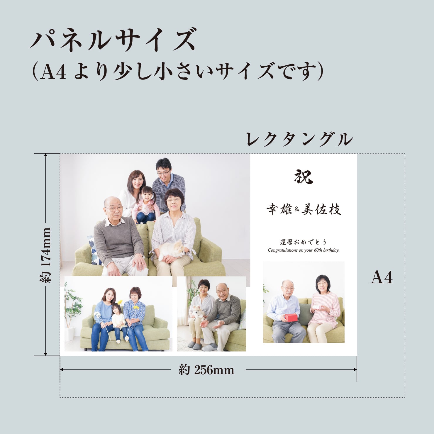 還暦を迎えられたおじいちゃんおばあちゃんをお祝いするフォトパネル。